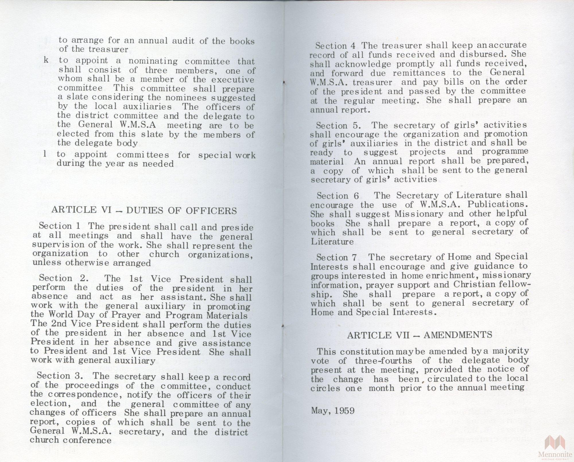 Constitution for the Women's Missionary and Service Auxiliary, pages 6 and 7