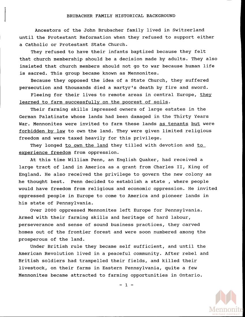 Keywords Brubacher House Museum, John Brubacher, Protestant Reformation, Mennonites, martyr, German Palatinate, Thirty Years War, William Penn, Quaker, pioneer, Pennsylvania, Ontario