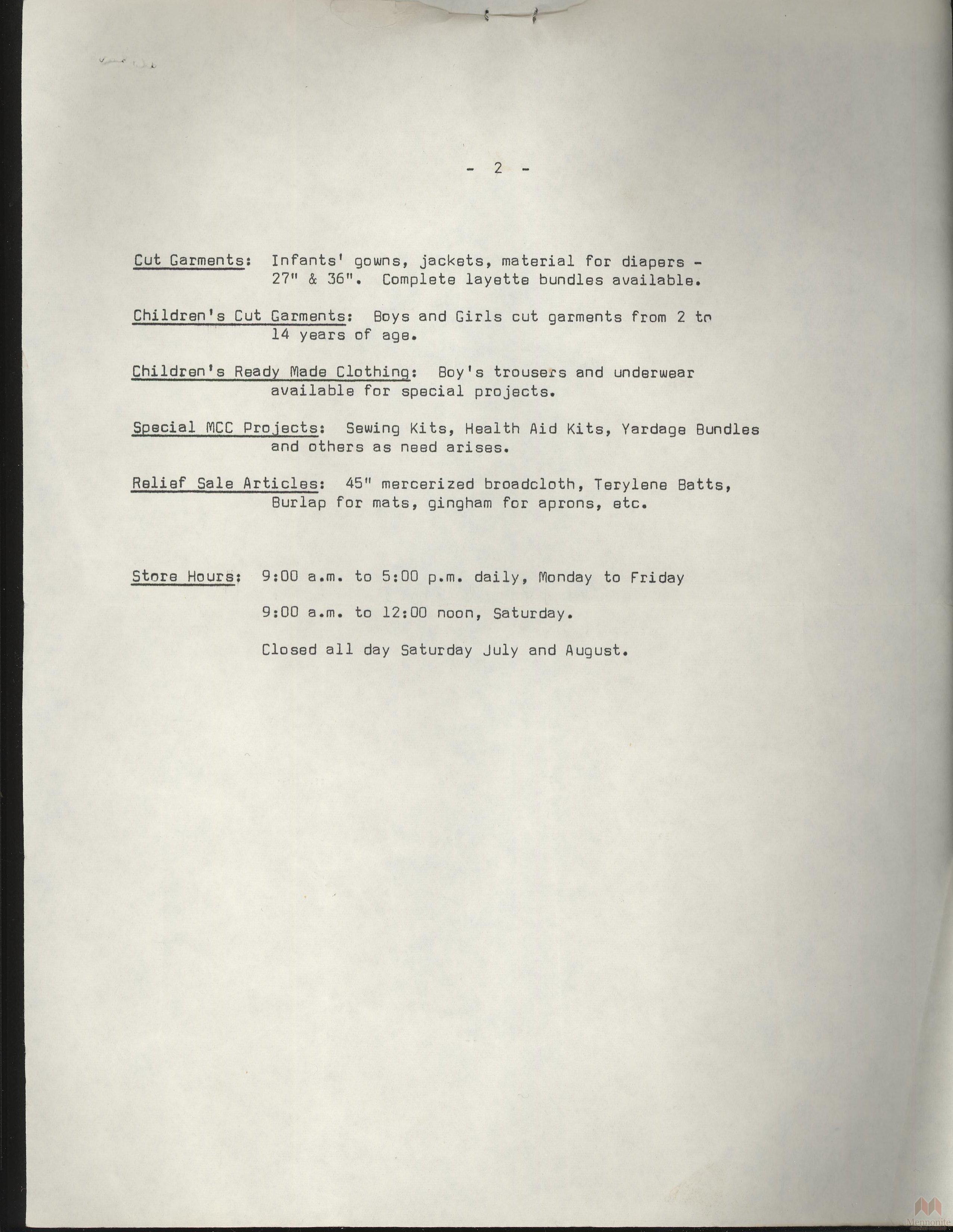 Formation of the Mennonite Cutting Room, pg.2