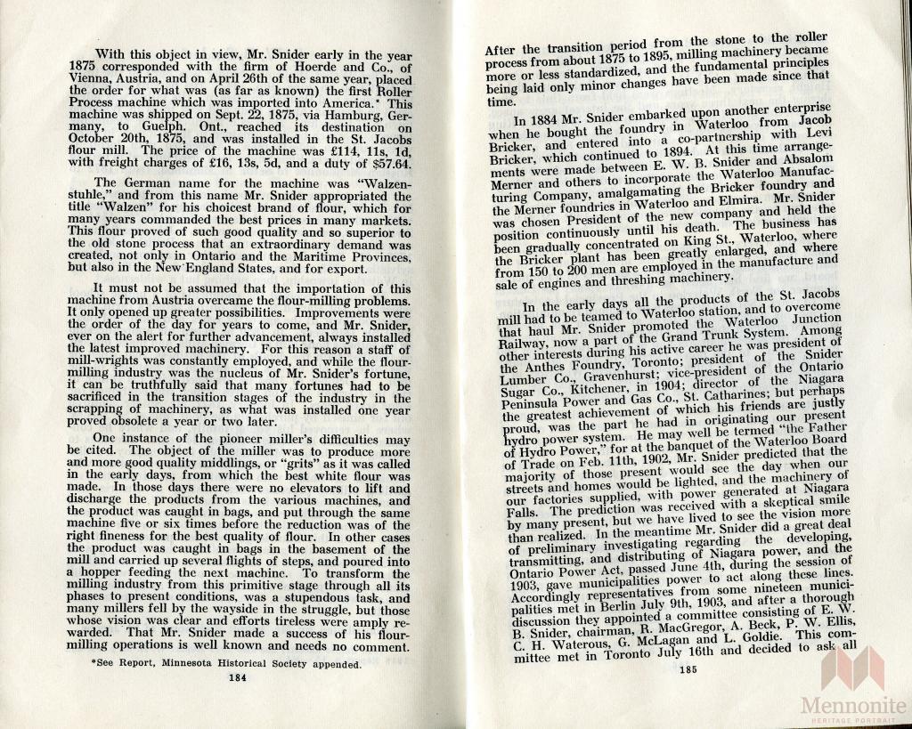 Accession Data Ninth Annual Report of the Waterloo Historical Society, 1921, Pages 183-188.