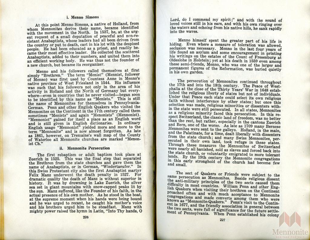 Keywords Mennonite, Mennonites, Anabaptist, Anabaptists, Menno Simons, Wendel Baumann, Lancaster County, Pennsylvania, Waterloo County, Ontario