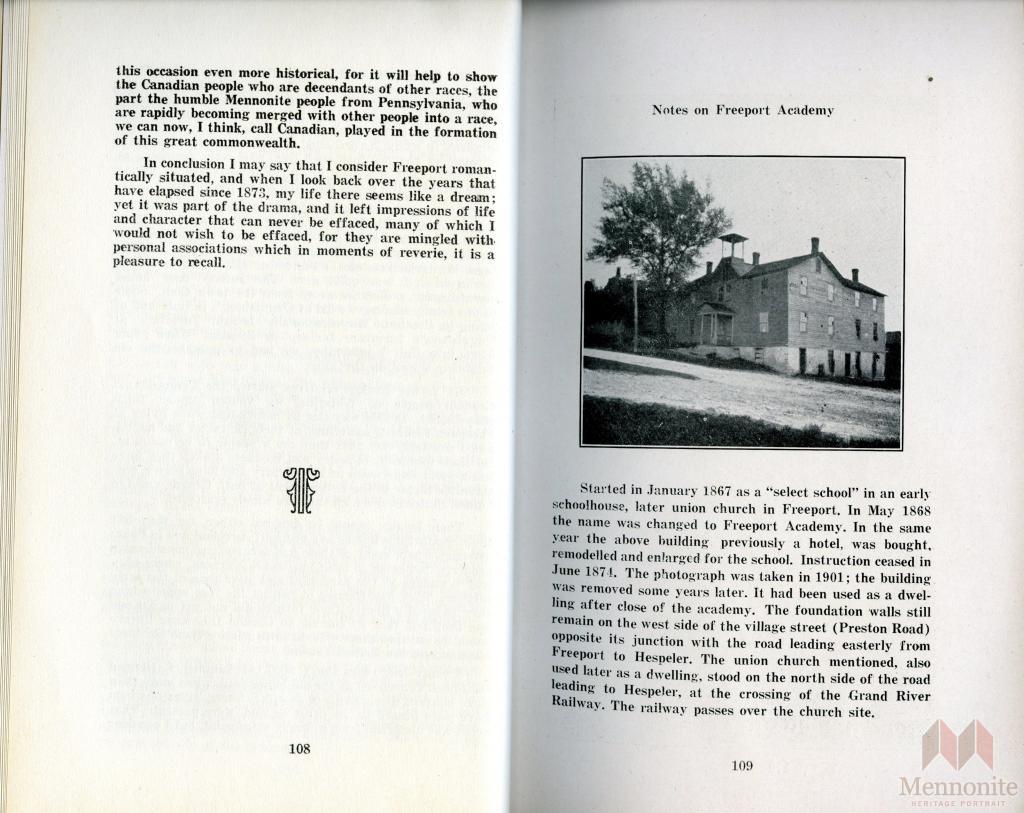 Keywords M.J. Sherk; Freeport; Bloomingdale, Breslau; West Montrose; Hawkesville; Berlin; Waterloo; Galt; Preston; Hespeler; Elmira; Conestoga; Winterbourne; Cornell's Corners; Freeport Academy; Pennsylvania Germans; Waterloo