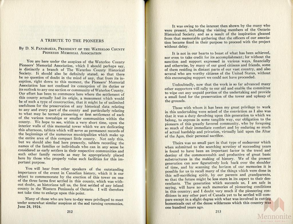 Accession Data Fourteenth Annual Report of the Waterloo Historical Society, 1926, Page 212-216.