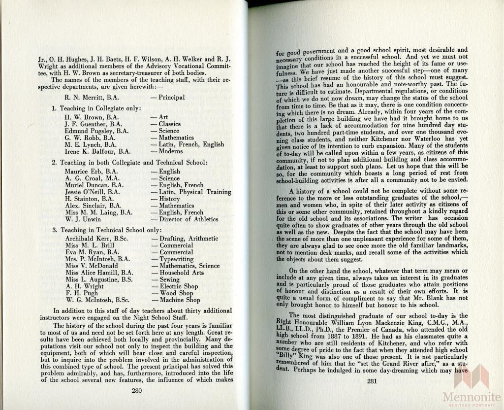 Keywords Kitchener and Waterloo Collegiate and Vocational School, Kitchener Collegiate Institute, Berlin County Grammar School, grammar school, grammar schools, Central Public School, graduate, graduates, William Lyon Mackenzie King, Prime Minister of Canada, journalist, journalists, teacher, teachers, engineer, engineers, musician, musicians, football player, football players