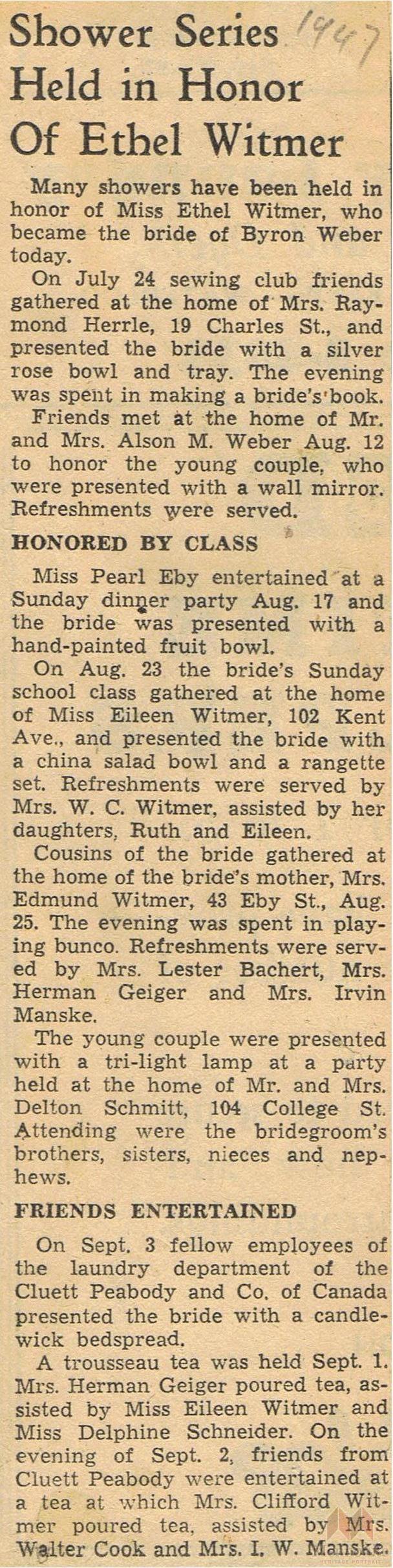 Keywords Witmer, Weber, Ethel Witmer, Ethel Weber, Byron Weber