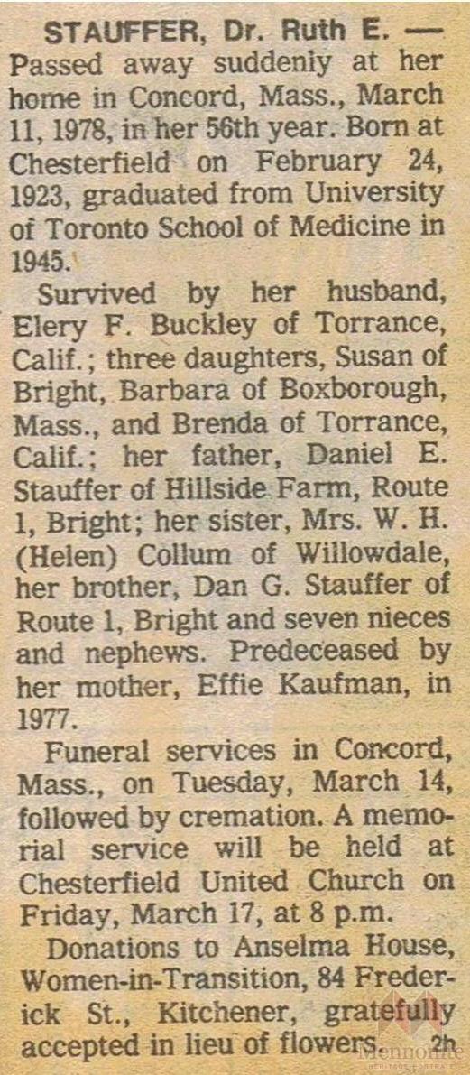 Keywords Doctor, Dr. Ruth E. Stauffer, Elery F. Buckley