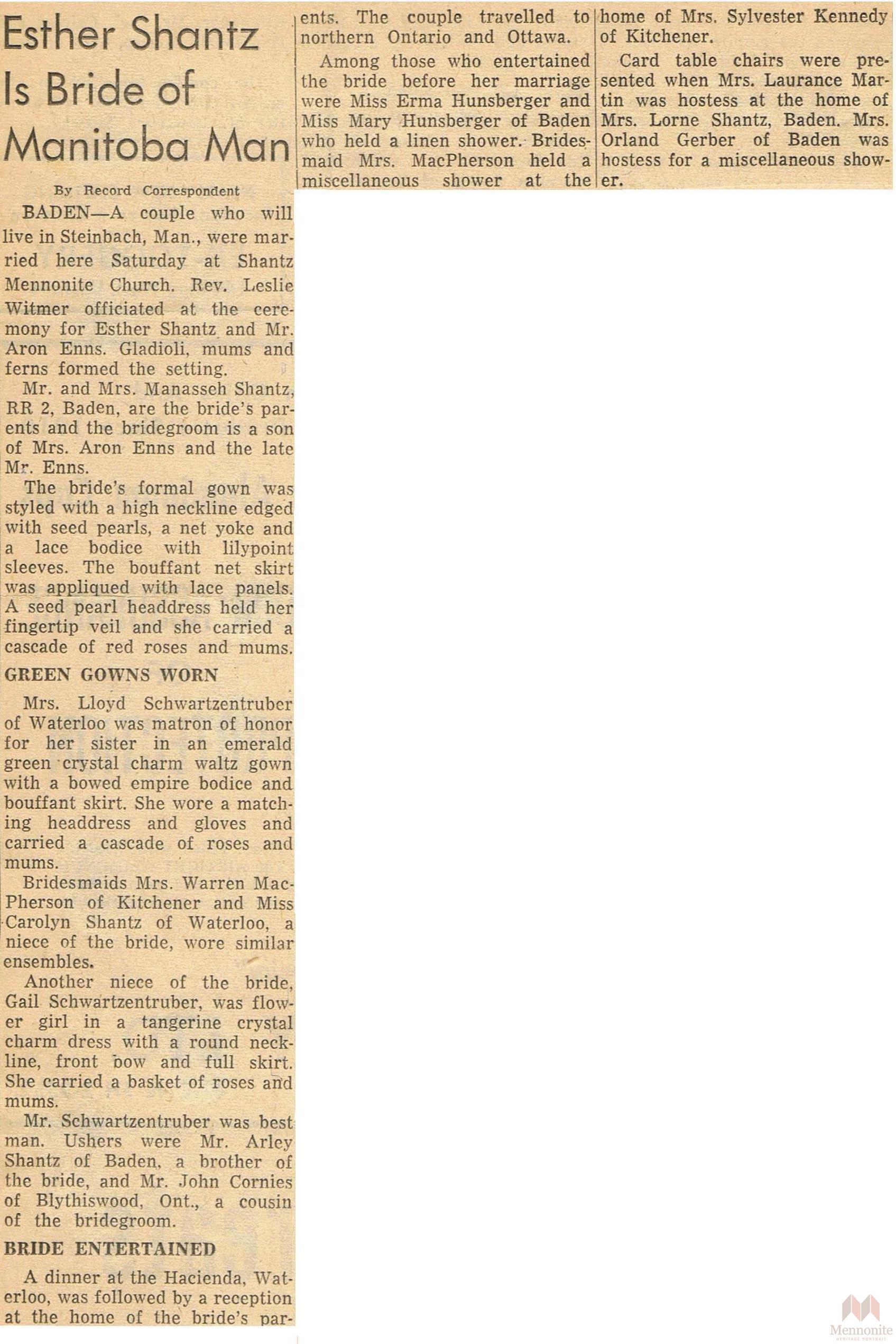Keywords Shantz, Enns, Aron Enns, Esther Shantz, Shantz Mennonite Church