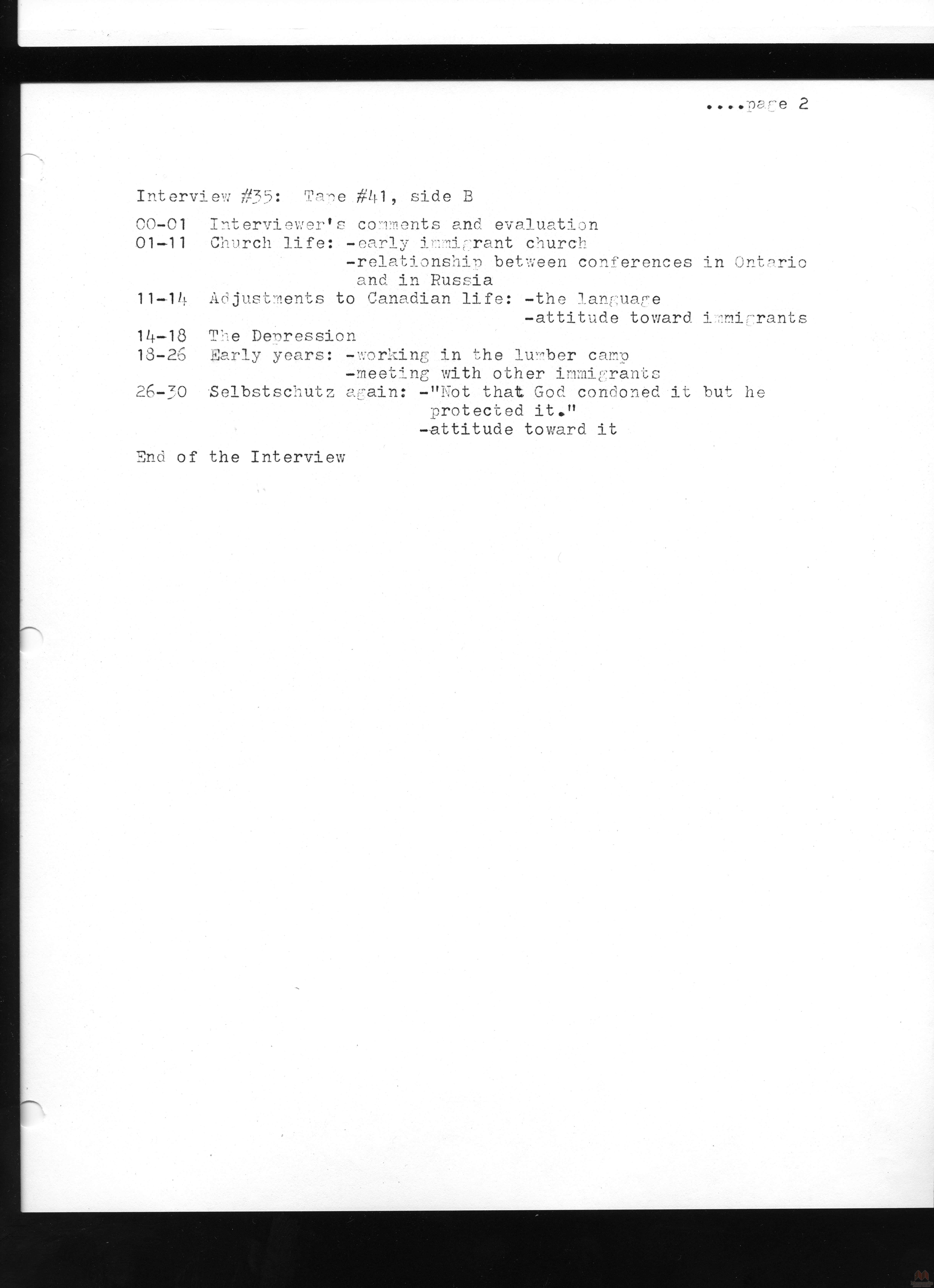 Finding Aid #1 - Oral History - Russian Mennonite Migration - 1920's