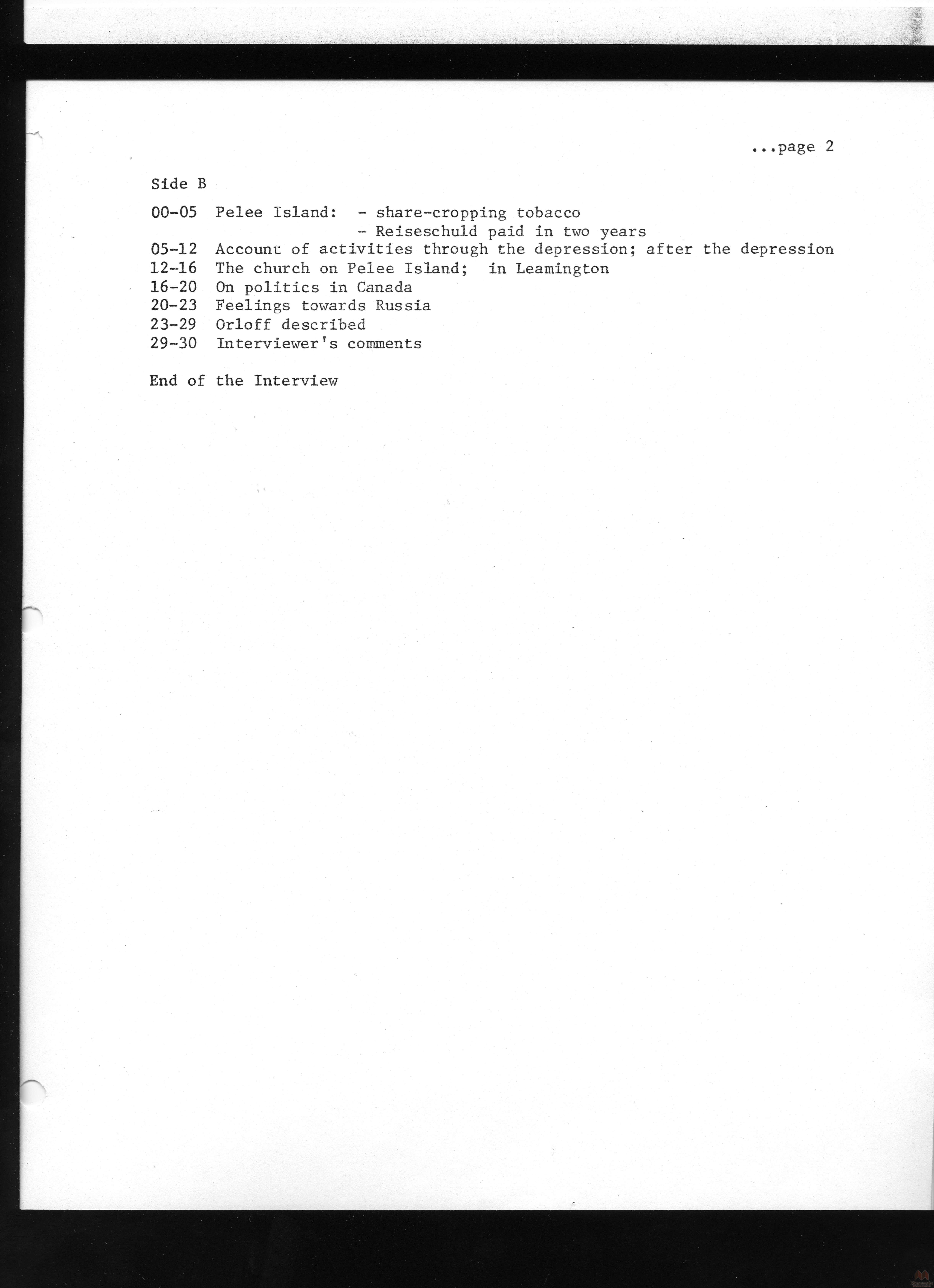 Keywords Mennonite, Russia, Russian, emigration, interview, oral, history, immigration, immigrants, Canada, Ontario, 1920s, transcript, J.P. Driedger,