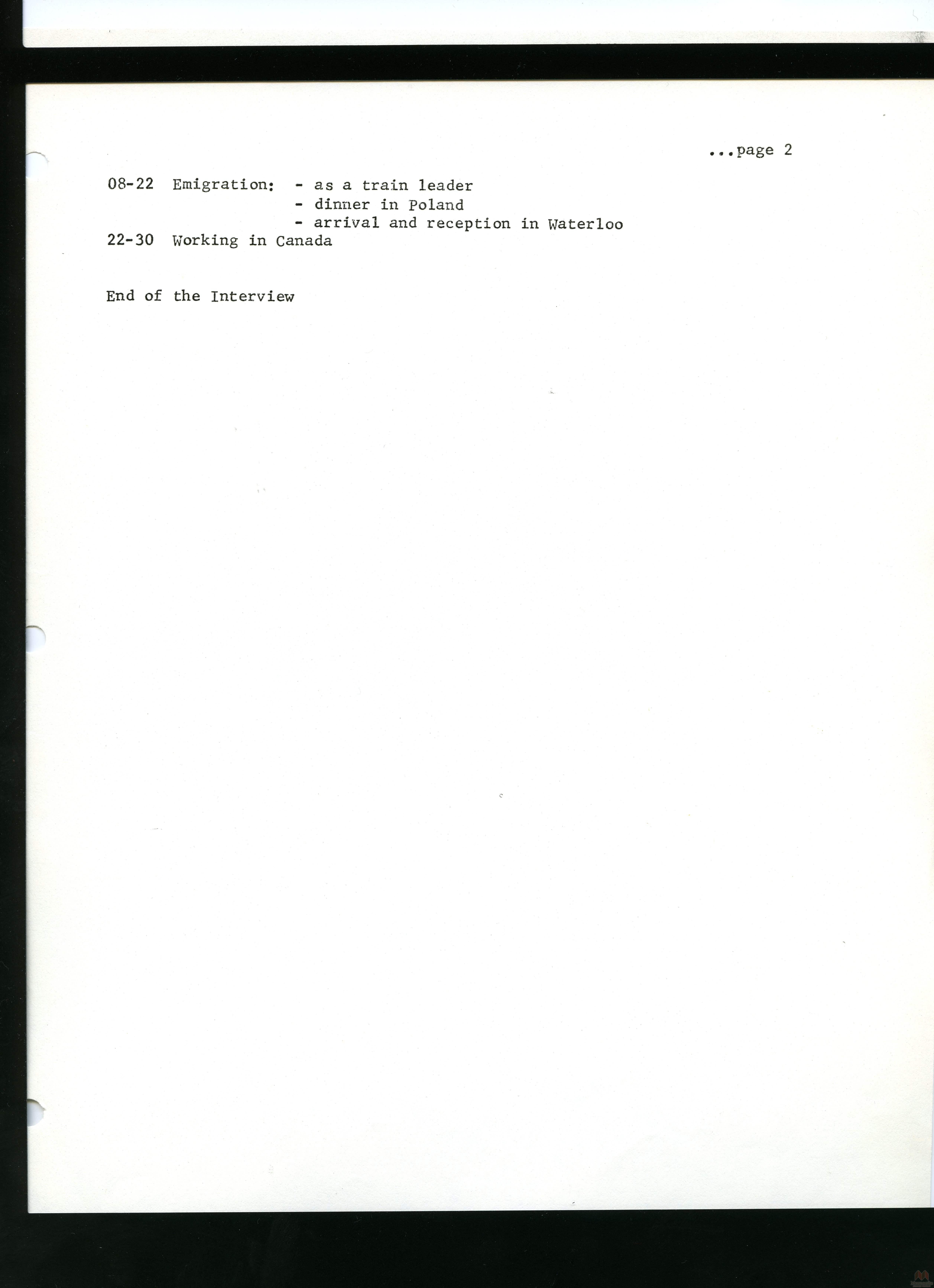 Finding Aid #1 - Oral History - Russian Mennonite Migration - 1920's