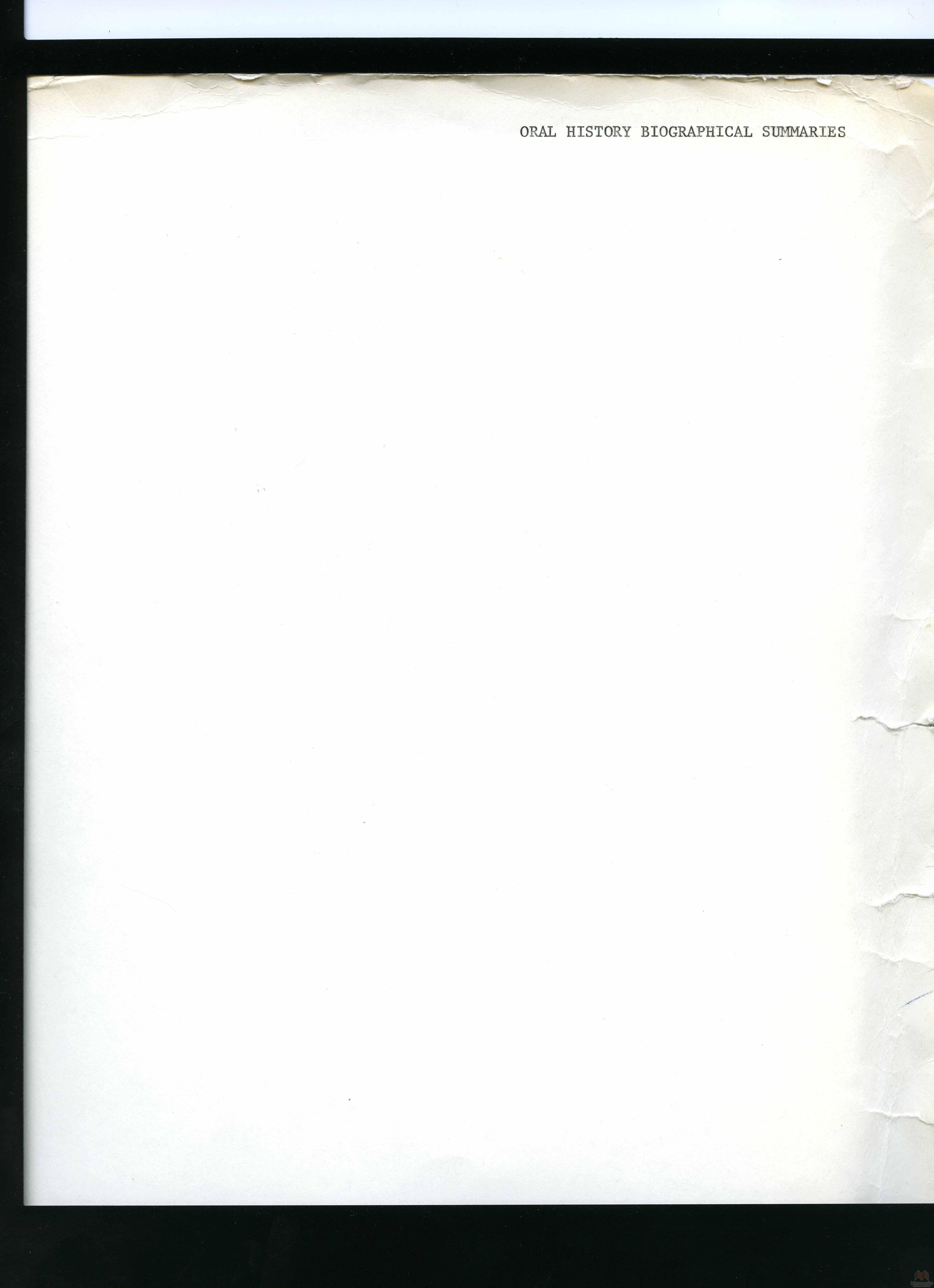 Finding Aid #1 - Oral History - Russian Mennonite Migration - 1920's