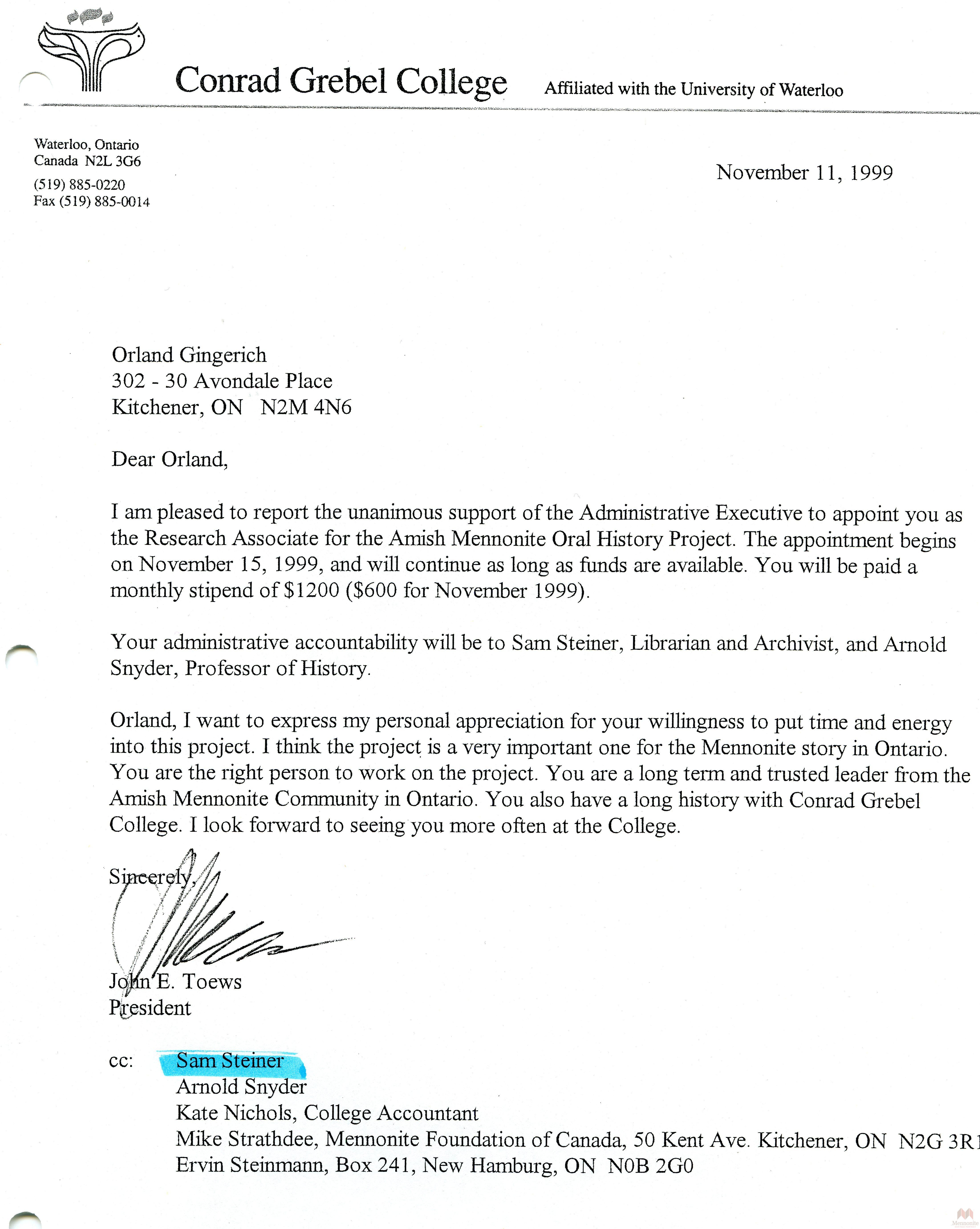 Hist.Mss.22.7 Oral History, Amish Mennonite Experience in Ontario - Summeries & Releases