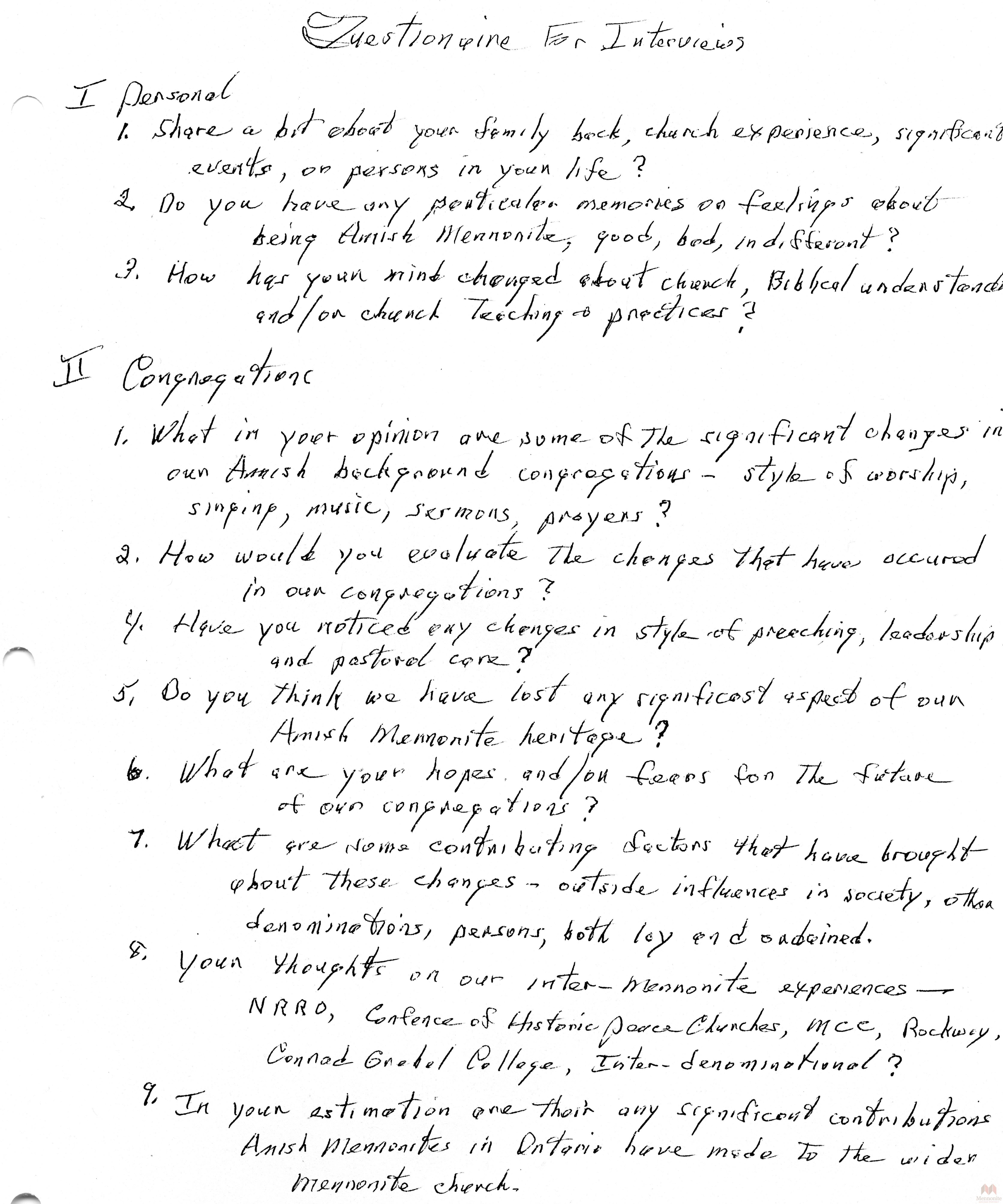 Hist.Mss.22.7 Oral History, Amish Mennonite Experience in Ontario - Summeries & Releases