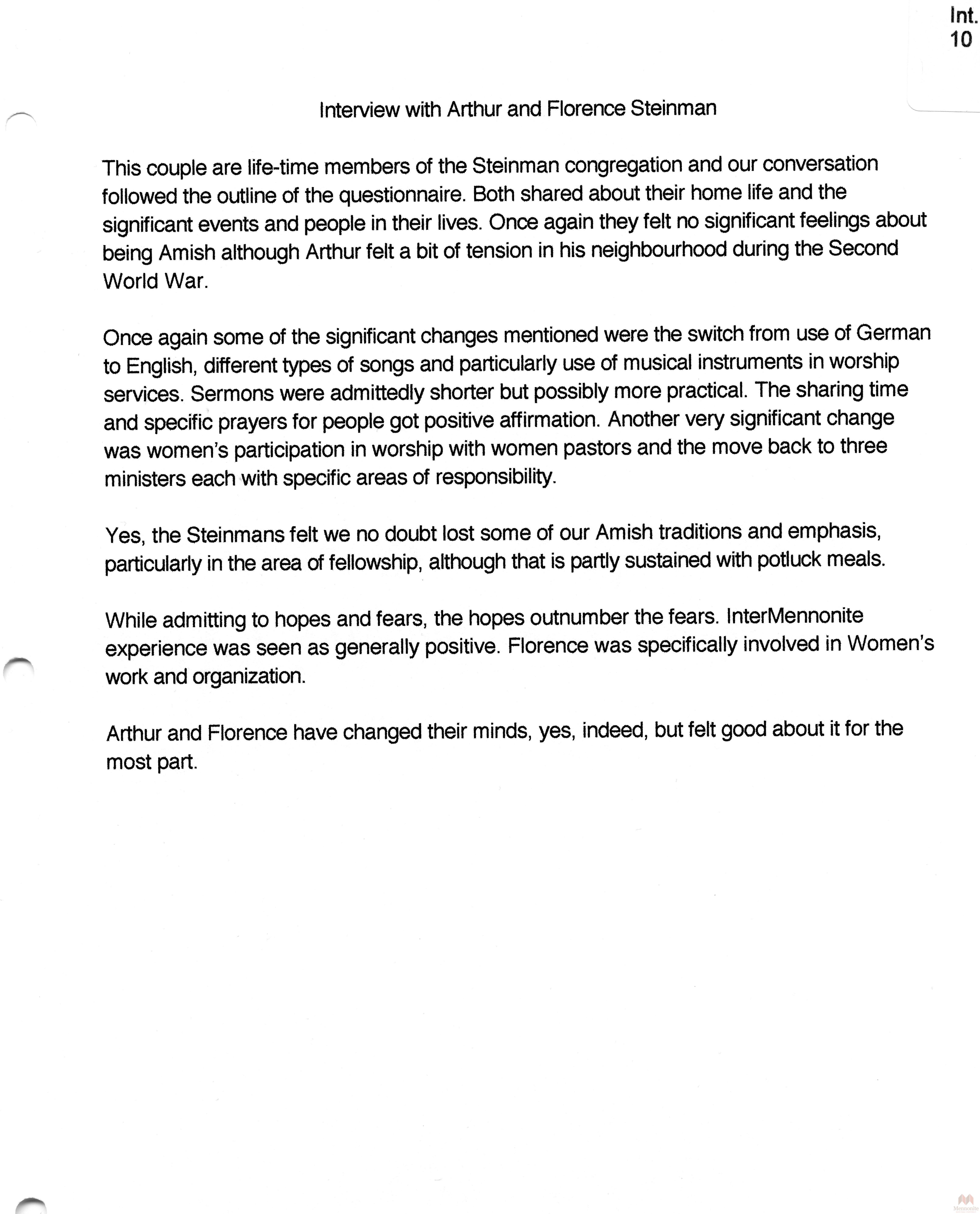 Keywords Hist.Mss.22.7, Oral, History, Amish, Mennonite, Ontario, Summaries, Releases, stories, recollections, Southwestern Ontario, Amish Mennonite Oral History Project, Conrad Grebel College, Arthur Steinman, Florence Steinman,