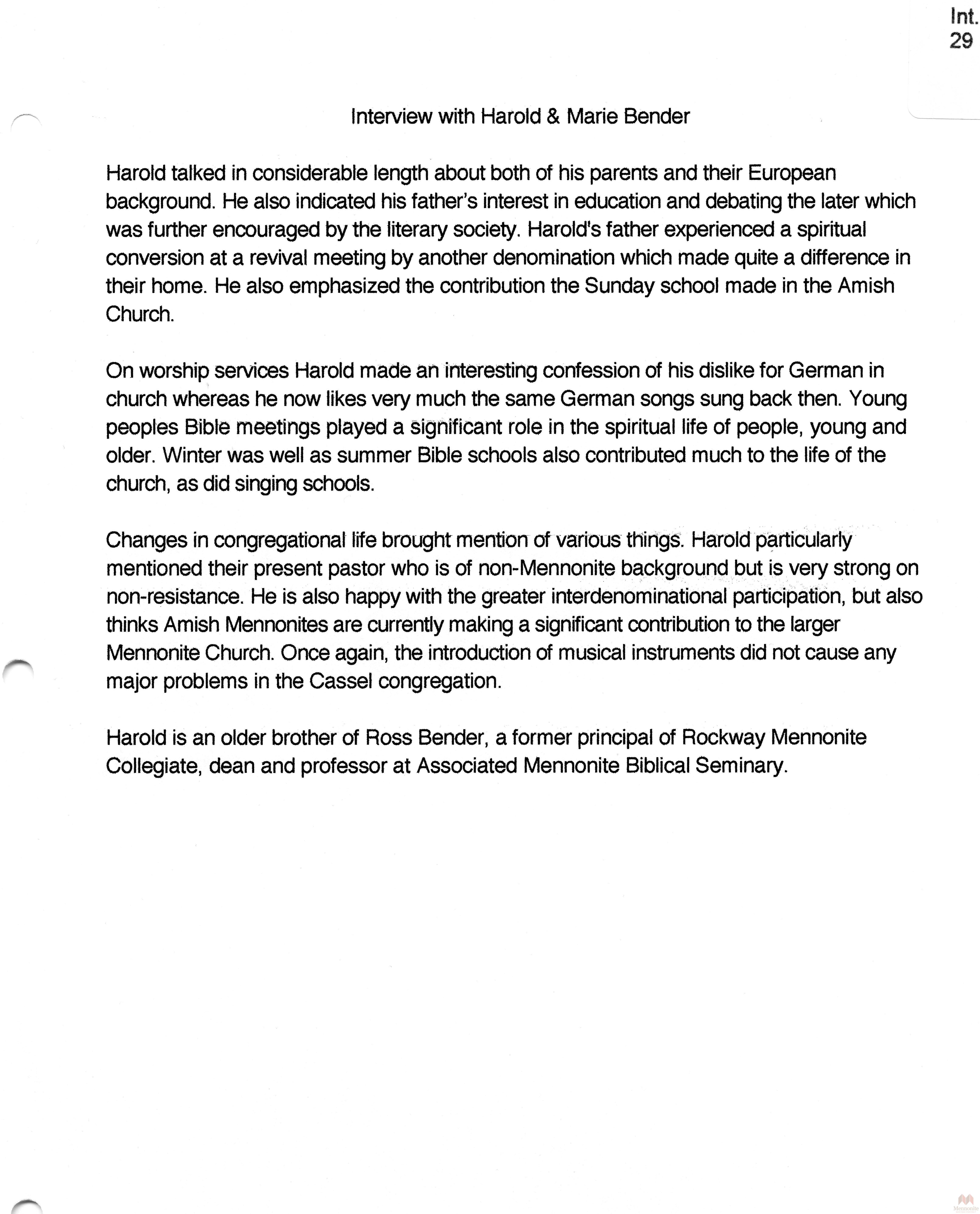 Hist.Mss.22.7 Oral History, Amish Mennonite Experience in Ontario - Summeries & Releases