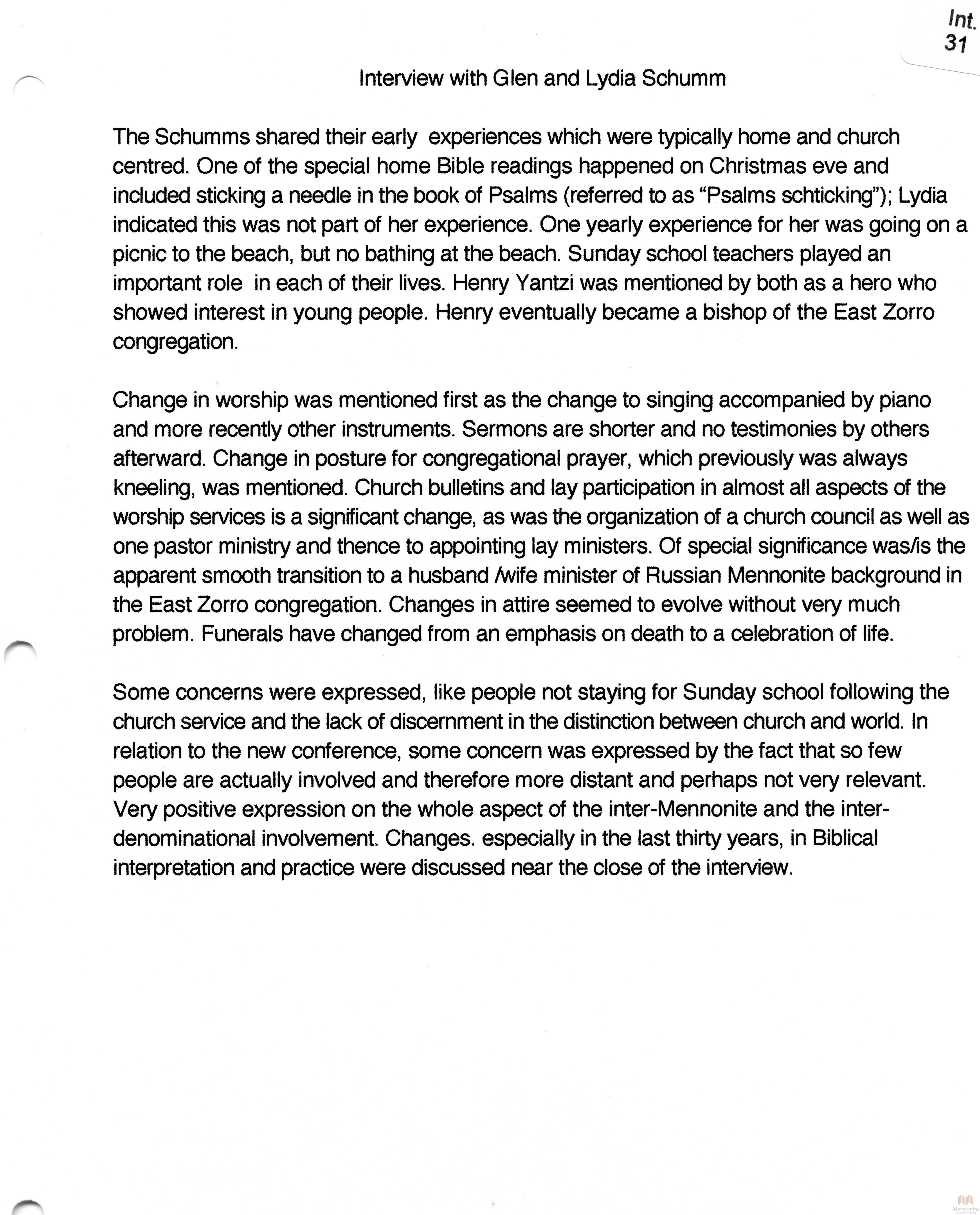 Hist.Mss.22.7 Oral History, Amish Mennonite Experience in Ontario - Summeries & Releases