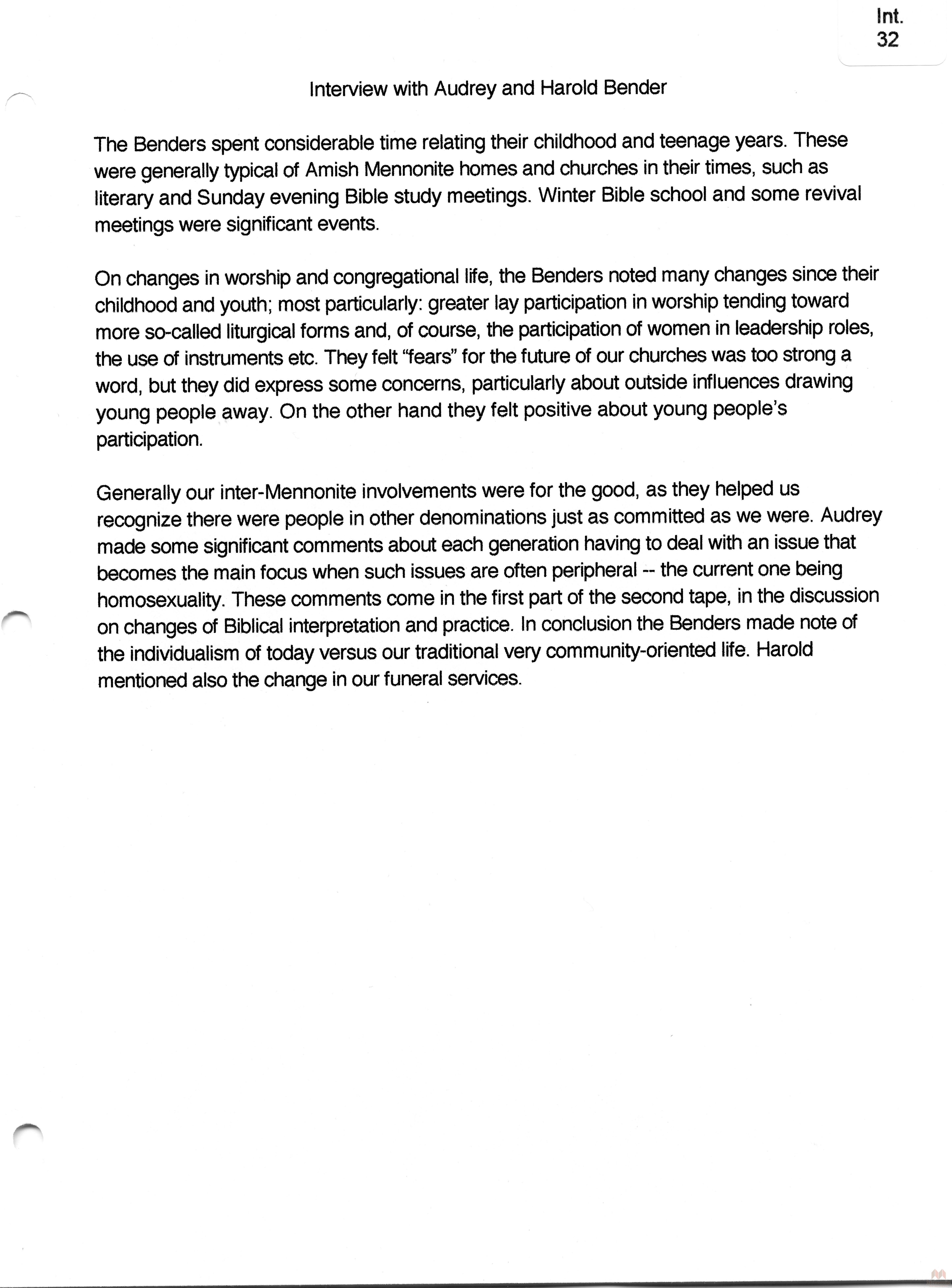 Hist.Mss.22.7 Oral History, Amish Mennonite Experience in Ontario - Summeries & Releases
