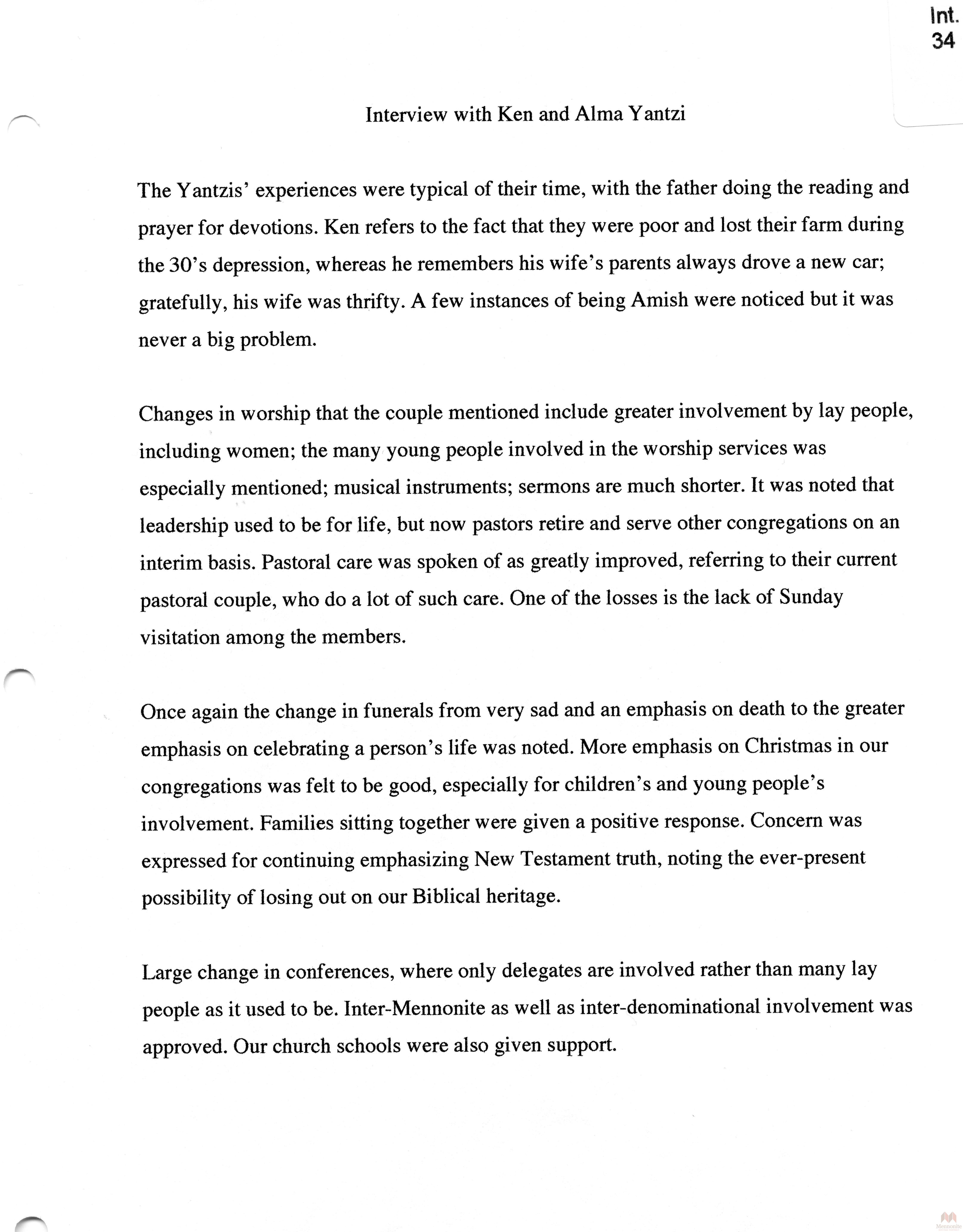 From the collection:Hist.Mss.22.7 Oral History, Amish Mennonite Experience in Ontario - Summeries & Releases
