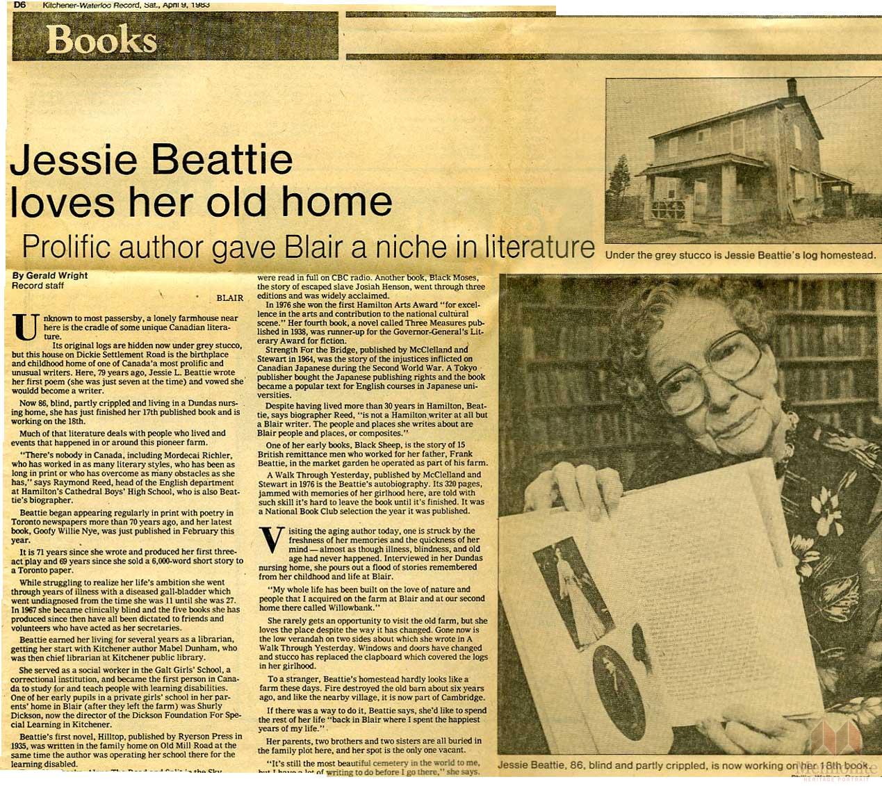 Keywords Jessie Beattie, Blair, homestead, home, author, The Record, Raymond Reed,