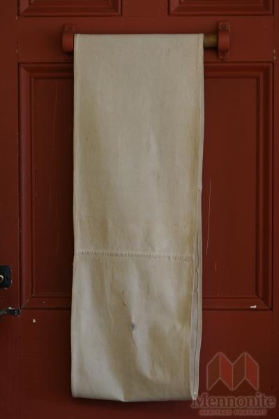 Object Composition Roller towel is a cloth bag and wooden bar is wood