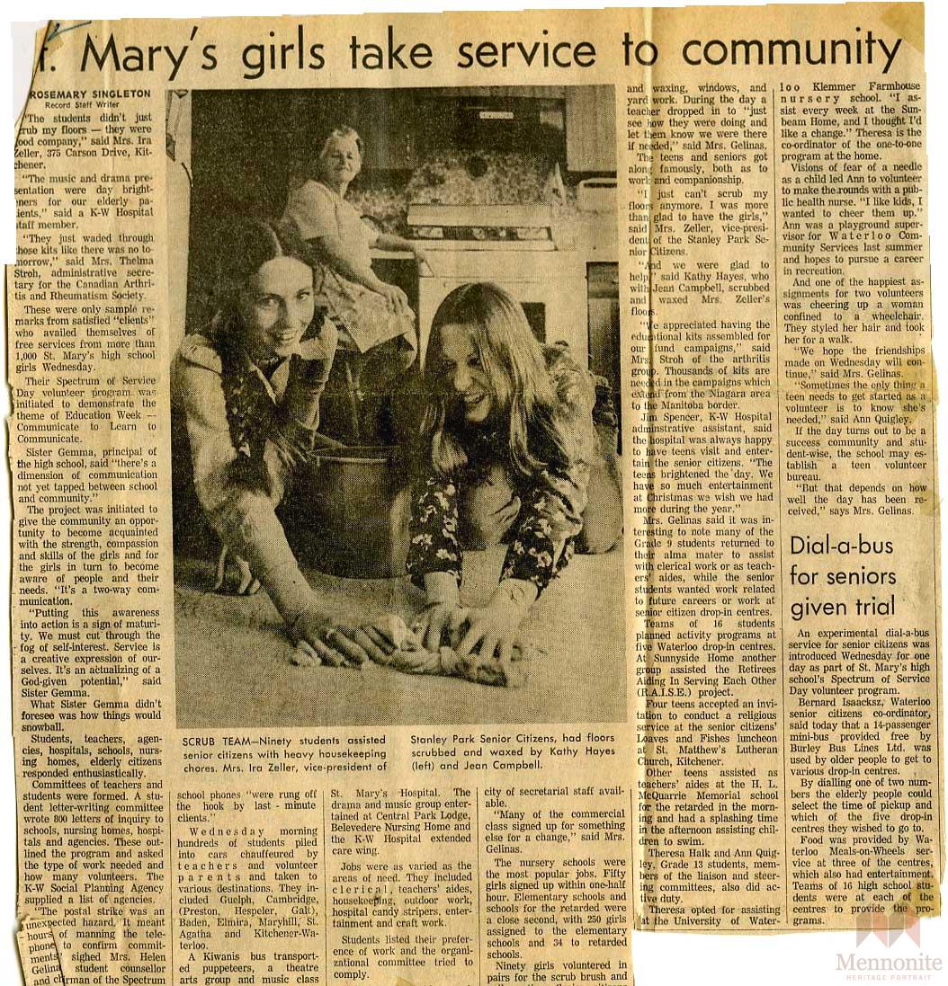 Keywords St. Mary’s, girls, students, volunteer, community, elderly, clean, Mrs. Ira Zellar, Kathy Hayes, Jean Campbell, Mrs. Thelma Stroh, Service Day, Sister Gemma, Mrs. Gelinas,