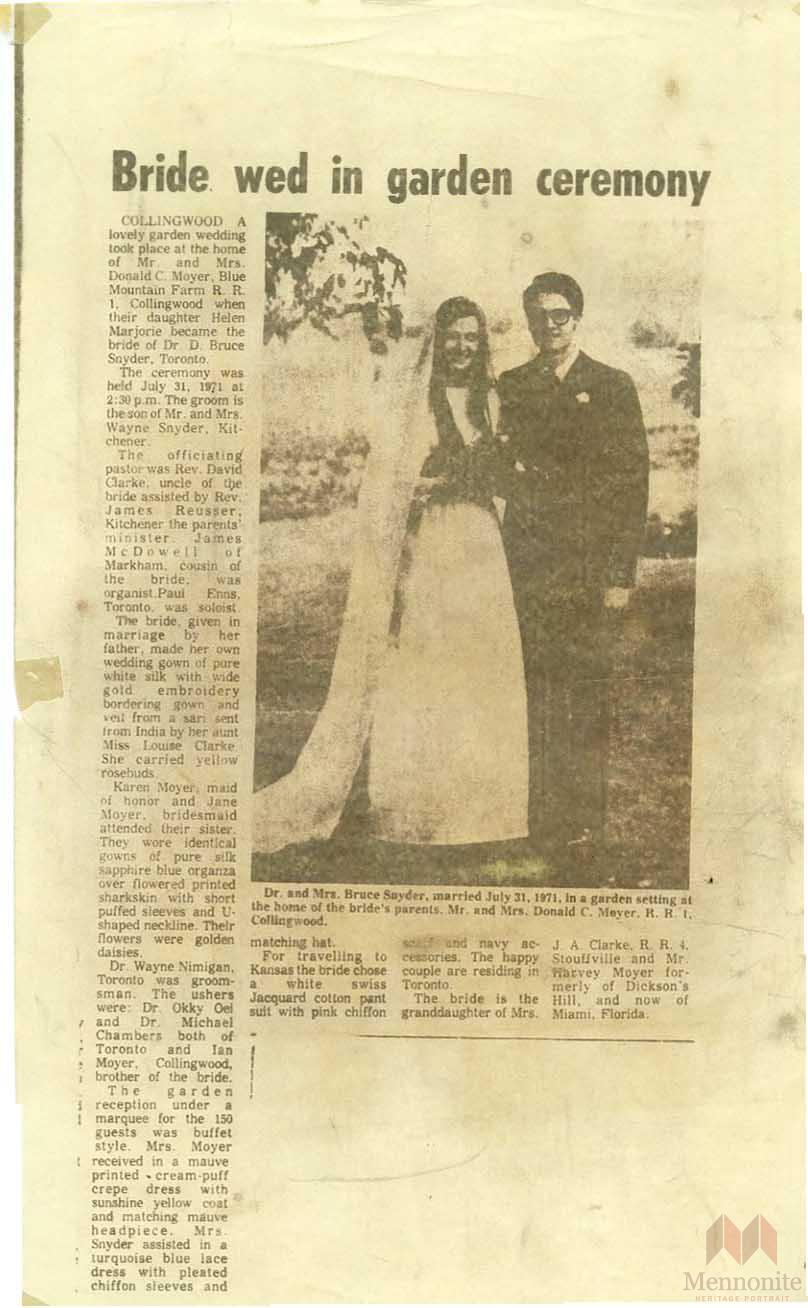 Keywords Mrs. J.A. Clarke, Mr. Harvey Moyer, Mrs. Donald C. Meyer, Mr. Donald C. Meyer, garden, wedding, Mrs. Wayne Snyder, Mr. Wayne Snyder, Rev. David Clarke, Rev. James Reusser, Paul Enns, James McDowell, Karen Moyer, Jane Moyer, Dr. Wayne Nimigan, Dr. Okky Oel, Dr. Micheal Chambers, Ian Moyer,